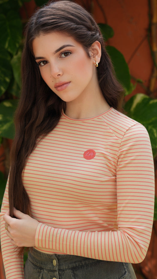 Ella cognac white stripe tee SS26